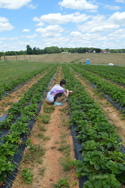 I know I am behind on posts, but I am trying in earnest to get caught up. Bobby, the girls, and I went strawberry picking at the beginning of the summer. We found a good spot to do so that wasn't too expensive and spent part of an afternoon in June picking the fresh fruit. It was delicious.